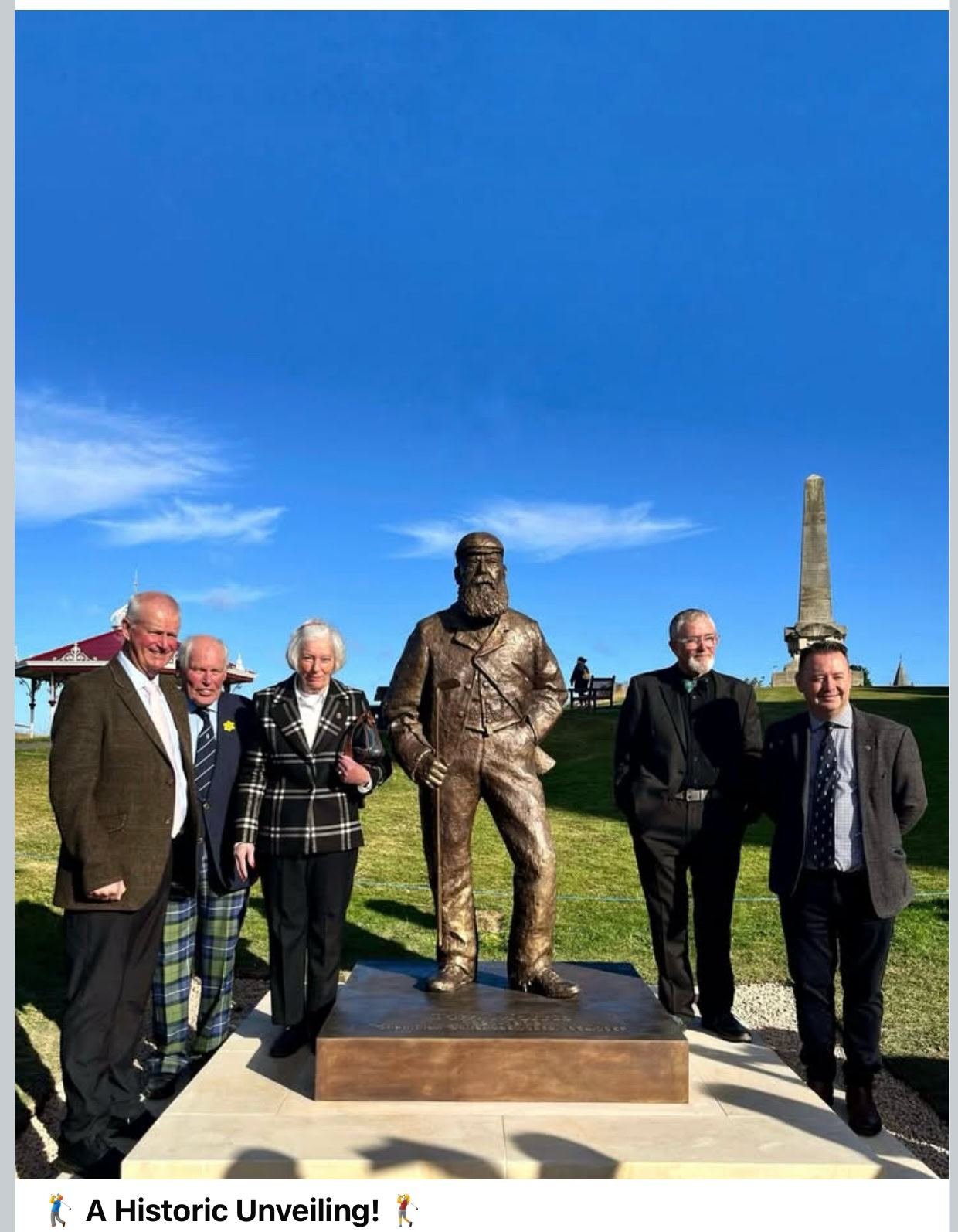 Ron Sandford, St Andrews Burns Club’s Citizen of the Year for 2025 is pictured, at the unveiling of the statue of Tom Morris. Ron, second from the left, was instrumental in this special project. He received the George Cowie Glass and the David Robertson Malt – each named in honour of past Presidents of the Club, as is a third element of the award, a collected edition of Burns named for the late A.B.Paterson. All three gentlemen gave outstanding service to the St Andrews community in their time.